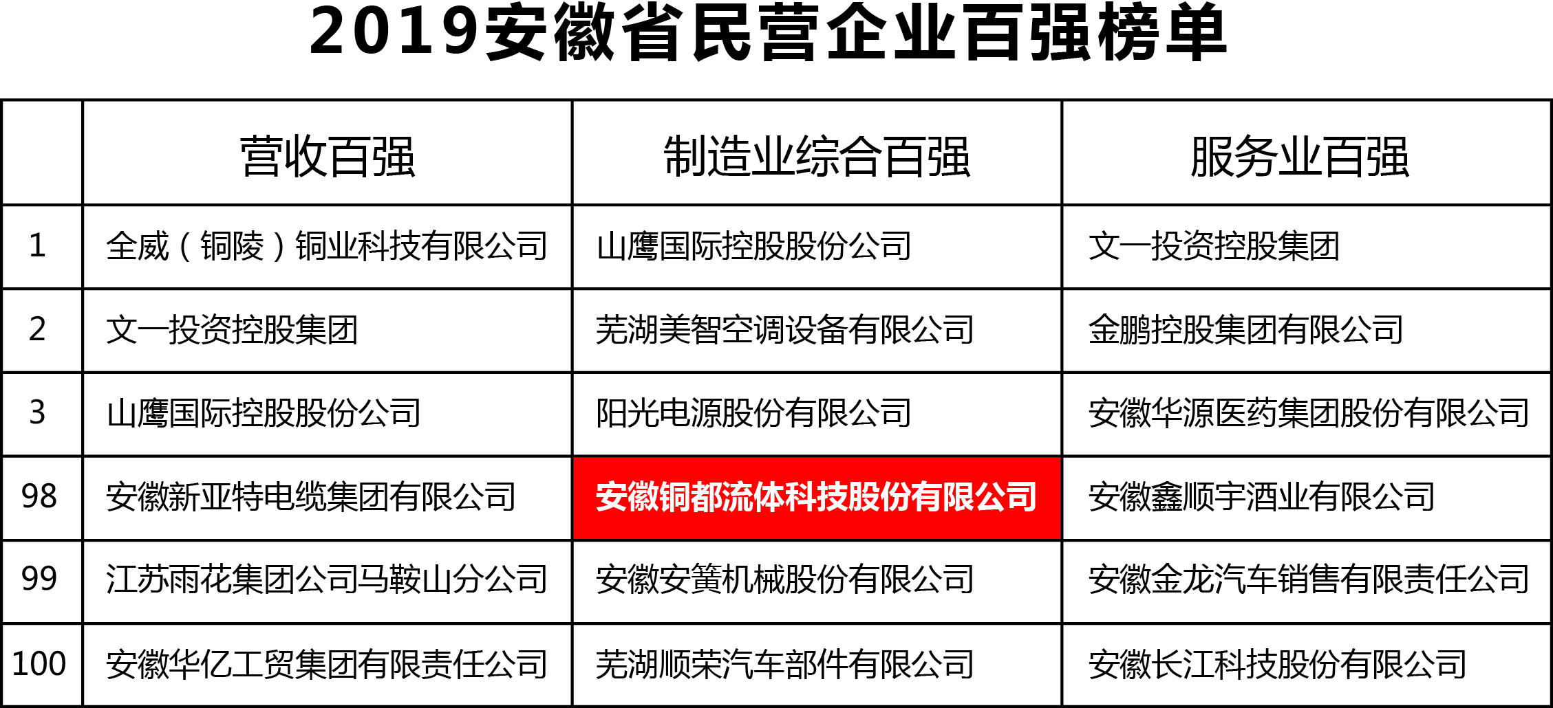 安徽銅都流體科技股份有限公司入圍制造業(yè)綜合百強(qiáng)。