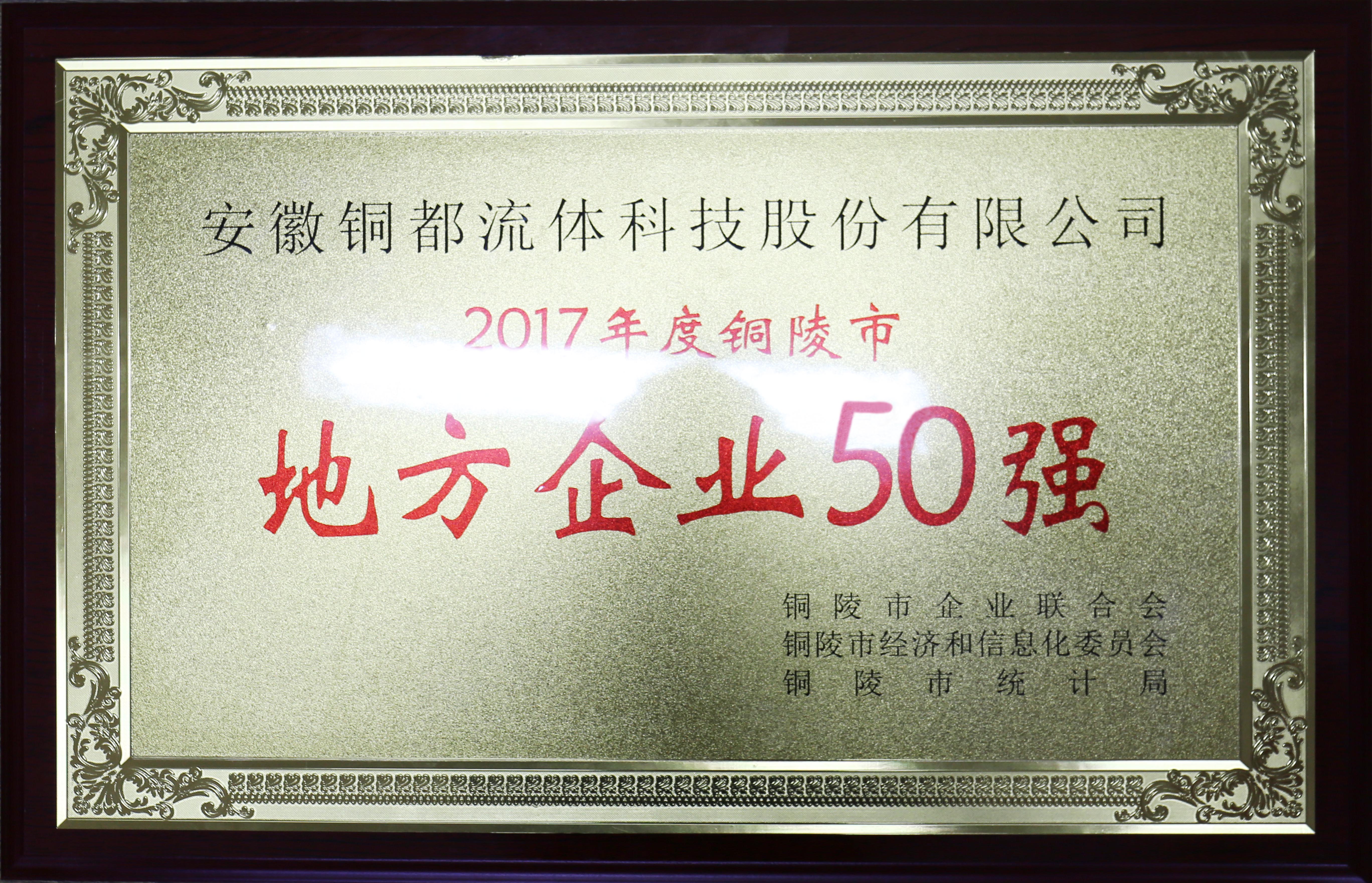 根據(jù)中共中央、國(guó)務(wù)院兩辦關(guān)于《貫徹落實(shí)〈中共中央、國(guó)務(wù)院關(guān)于營(yíng)造企業(yè)家健康成長(zhǎng)環(huán)境,弘揚(yáng)優(yōu)秀企業(yè)家精神更好發(fā)揮企業(yè)家作用的意見(jiàn)〉分工方案》文件要求,展示銅陵市骨干企業(yè)的良好形象和發(fā)展業(yè)績(jī),市企業(yè)家聯(lián)合會(huì)、市經(jīng)信委、市統(tǒng)計(jì)局參照國(guó)際慣例和國(guó)內(nèi)通行做法,以銅陵市地方法人企業(yè)作為申報(bào)資格,以2017年企業(yè)營(yíng)業(yè)收入為主要標(biāo)準(zhǔn),開展了2017年銅陵市"地方企業(yè)50強(qiáng)"評(píng)比活動(dòng),安徽銅都流體科技股份有限公司榜上有名。