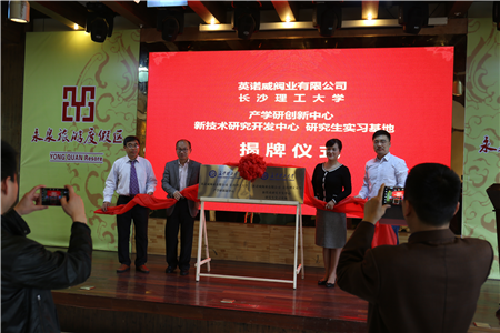 2018年4月11日上午,在銅陵永泉農(nóng)莊舉行,安徽銅都流體科技股份有限公司、英諾威閥業(yè)有限公司與長沙理工大學"產(chǎn)學研創(chuàng)新中心"、"新技術(shù)研究開發(fā)中心"、"研究生實習基地"揭牌儀式。