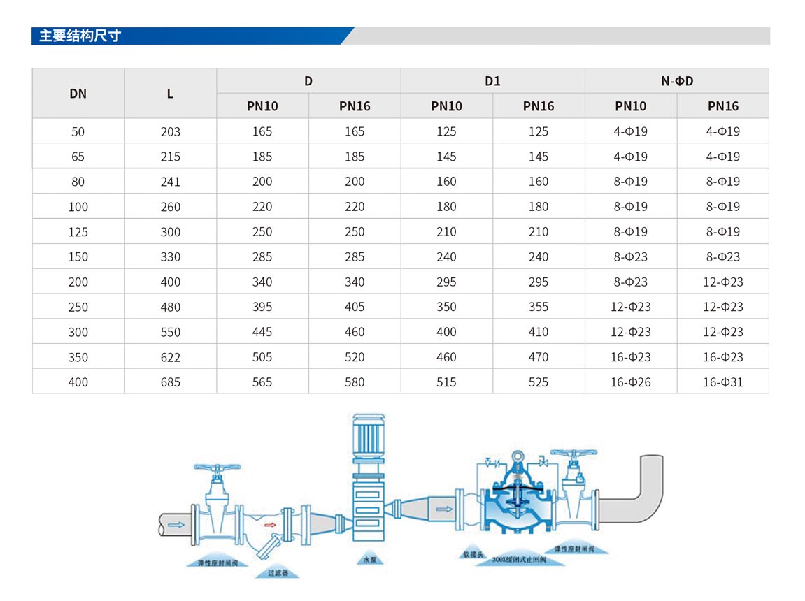 具有開啟和關(guān)閉速度調(diào)控的逆止閥,于啟動或停止抽水機運轉(zhuǎn)時,可配合現(xiàn)場調(diào)節(jié)至開啟或關(guān)閉速度??捎糜诟邔咏ㄖ?,減少水錘及水聲現(xiàn)象產(chǎn)生,以達安靜關(guān)閉之效果。 公稱壓力∶PNI0、PNI6、PN25 隔膜式∶DN50~DN500